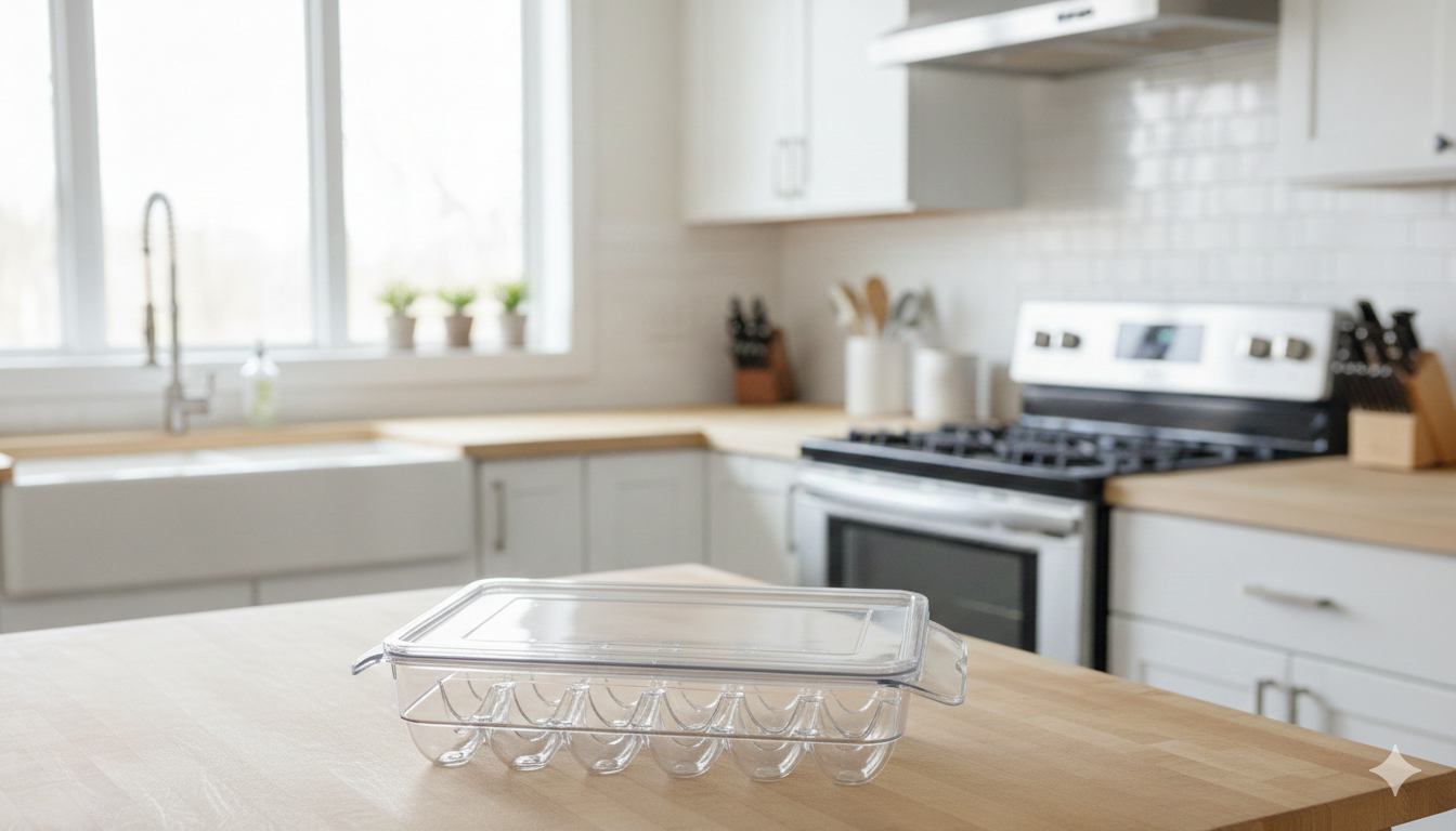 Mantén tus huevos seguros, organizados y siempre visibles con este organizador de huevos con tapa, ideal para optimizar el espacio en tu refrigerador.