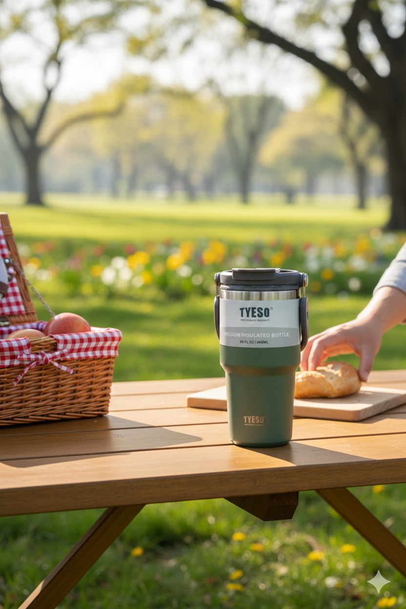 Disfruta tus bebidas favoritas donde quieras con el Termo Tyeso de 600 ml, diseñado para conservar la temperatura por más tiempo y brindarte comodidad en cada uso.