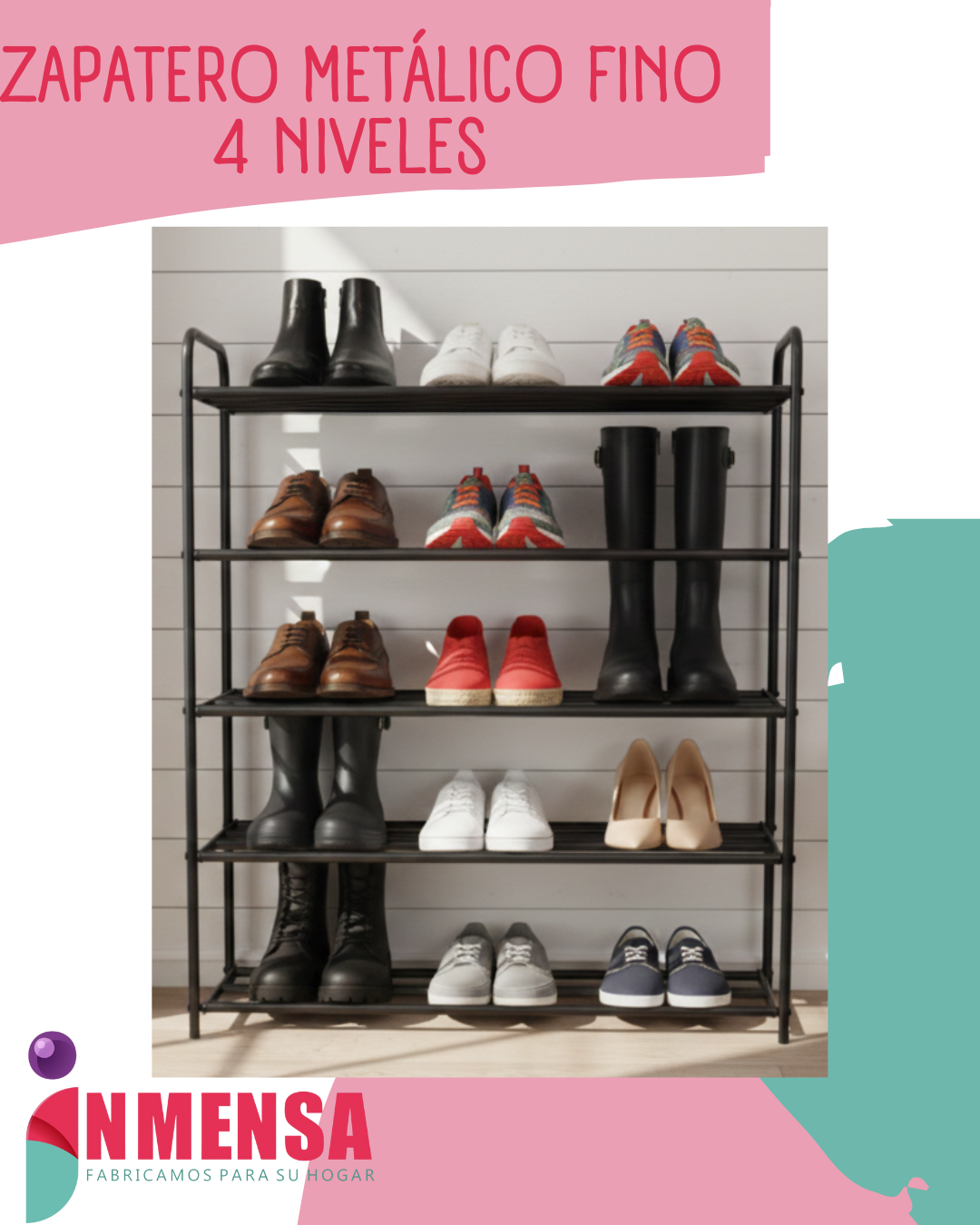 Mantén tus zapatos organizados y aprovecha mejor el espacio con este zapatero metálico de 4 niveles, ideal para habitaciones, closets o entradas.